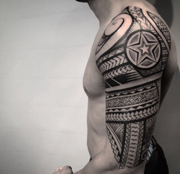 黑色几何线条纹身点刺技巧花臂半甲纹身男士霸气纹身图案
