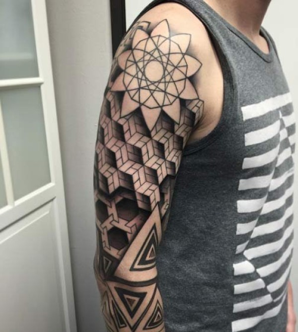 黑色几何线条纹身点刺技巧花臂半甲纹身男士霸气纹身图案