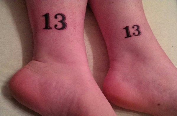 脚踝上纹身黑白灰风格纹身数字13抽象线条纹身图片