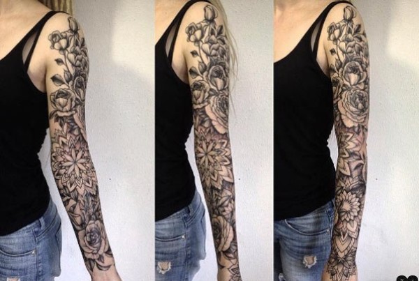 女性手臂线条纹身点刺技巧文艺花臂纹身素描技巧纹身图案