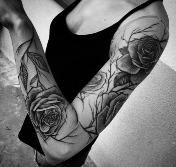 女性手臂线条纹身点刺技巧文艺花臂纹身素描技巧纹身图案