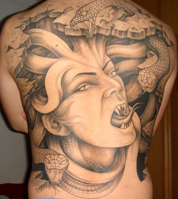 满背凶悍的美杜莎纹身图案