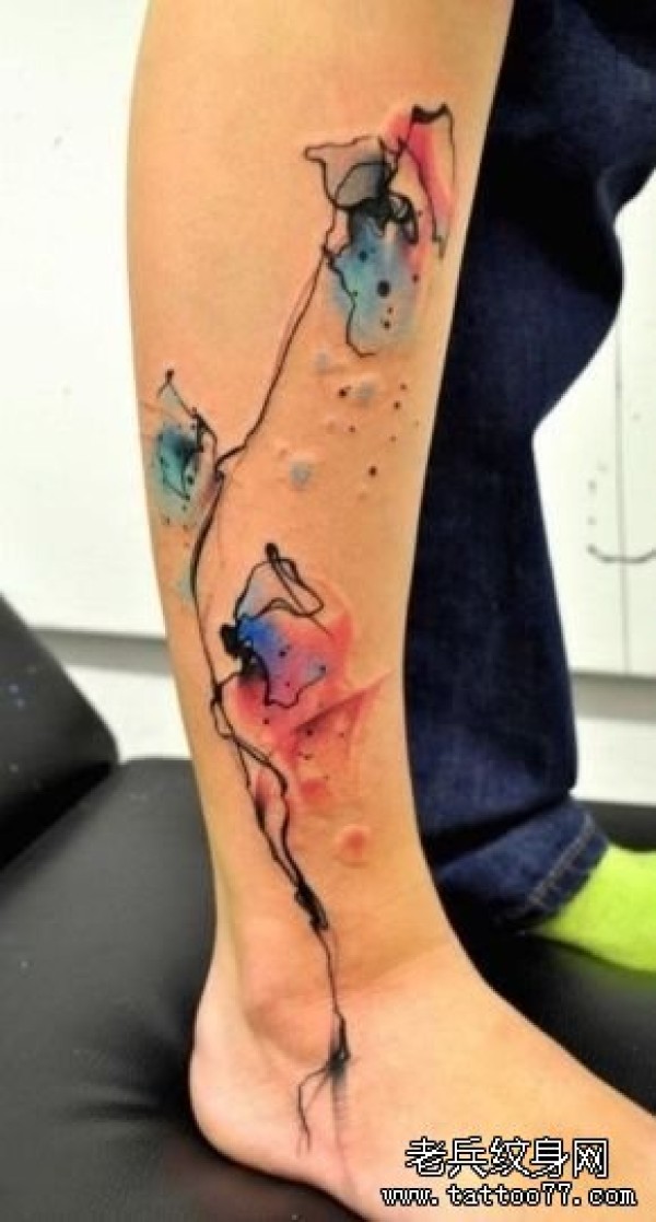 清新花朵腿部纹身图案图片_植物纹身图案大全_纹身图吧