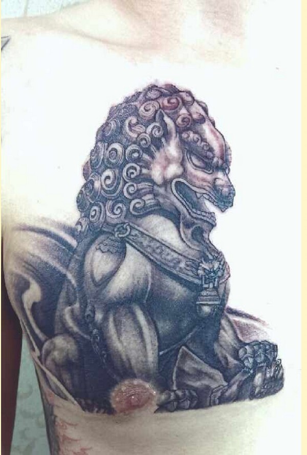 时尚男性胸部个性唐狮纹身图案