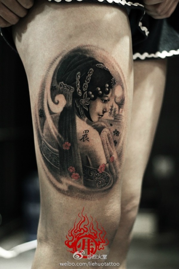 女生人物纹身图案 女生小腿上女生人物纹身图案