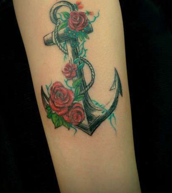 欧美玫瑰纹身 男生手臂上花朵纹身图片