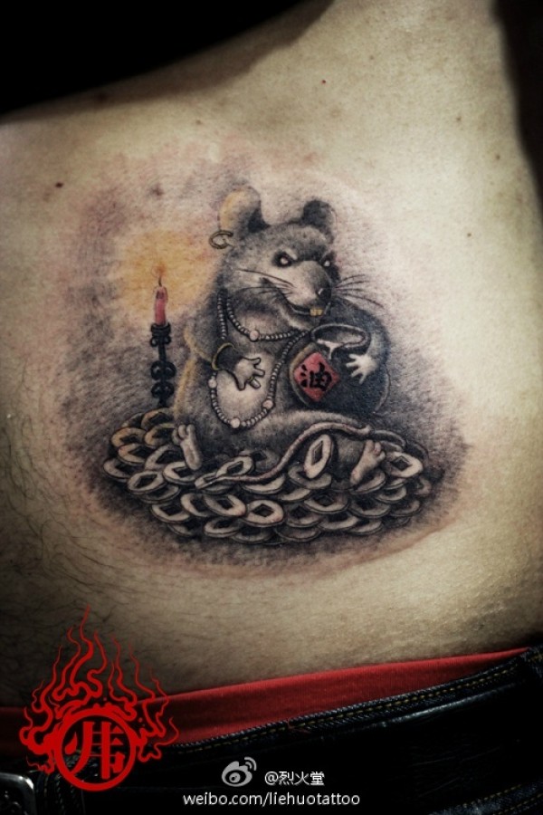 客人想要个胖老鼠抱着油缸,还要他坐在钱堆上~