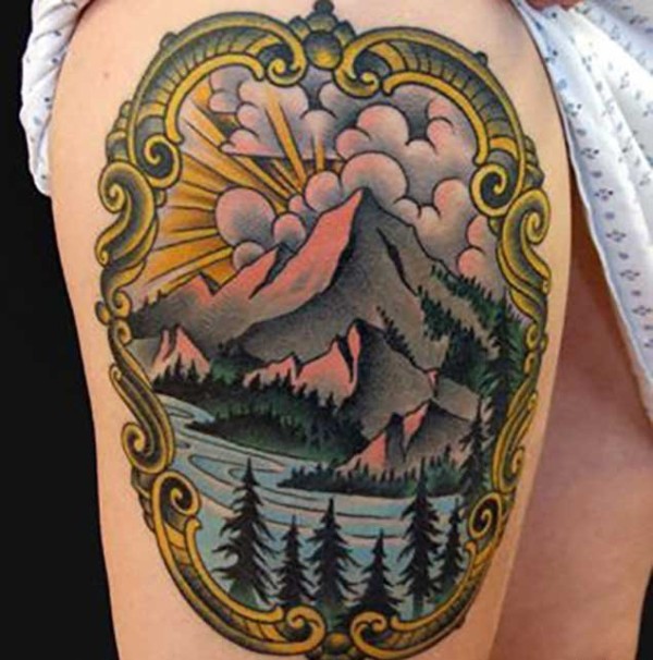 彩色的手臂山水纹身花朵纹身风景大自然植物纹身图案