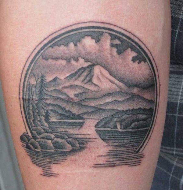 彩色的手臂山水纹身花朵纹身风景大自然植物纹身图案