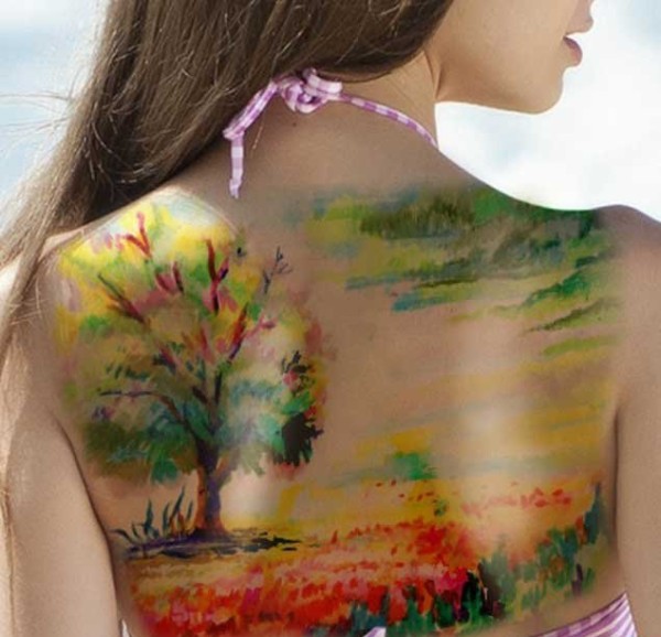 彩色的手臂山水纹身花朵纹身风景大自然植物纹身图案