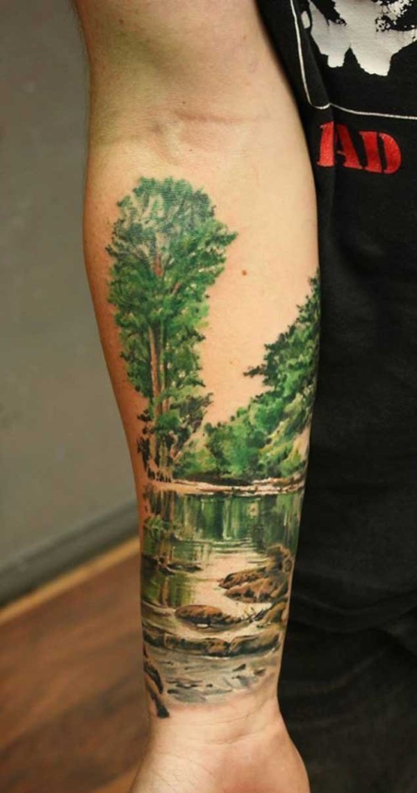 彩色的手臂山水纹身花朵纹身风景大自然植物纹身图案