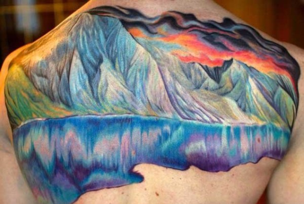 彩色的手臂山水纹身花朵纹身风景大自然植物纹身图案