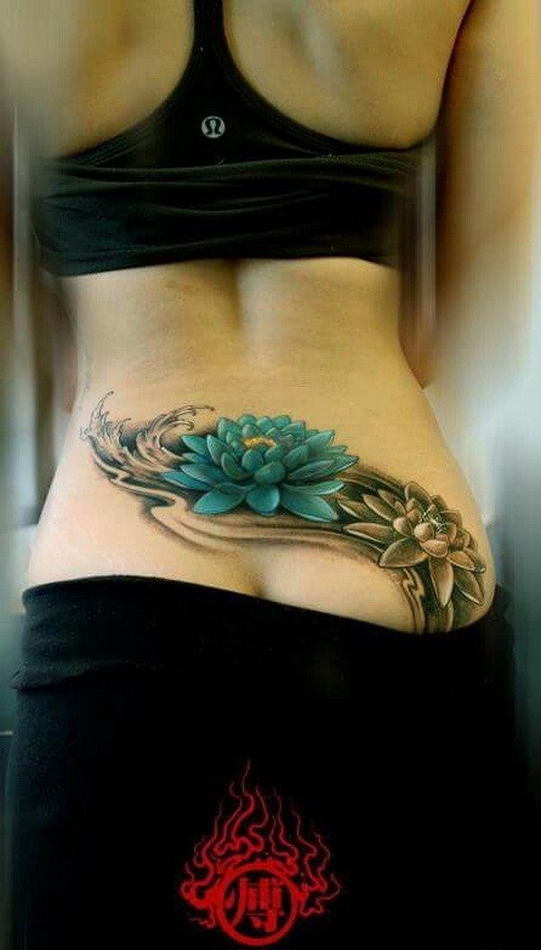 女性腰部莲花花纹刺青_腰部纹身图案大全_纹身图吧