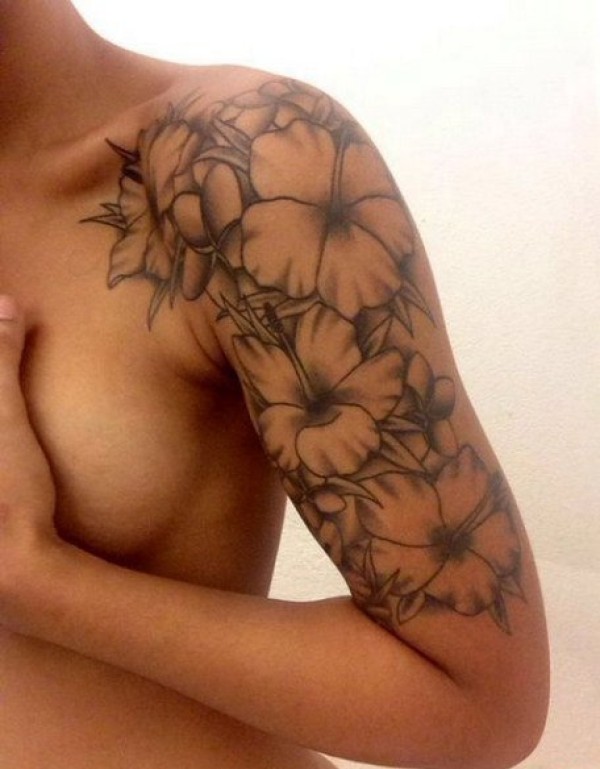 女生手臂上纹身点刺技巧植物纹身素材花朵纹身图案