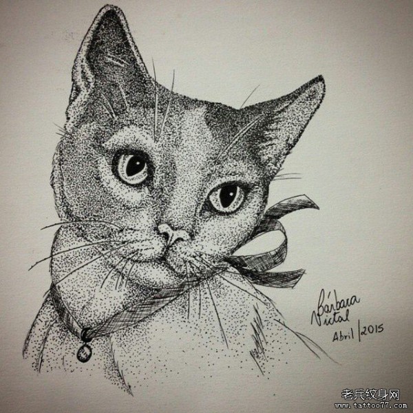 欧美点刺猫咪纹身图案手稿