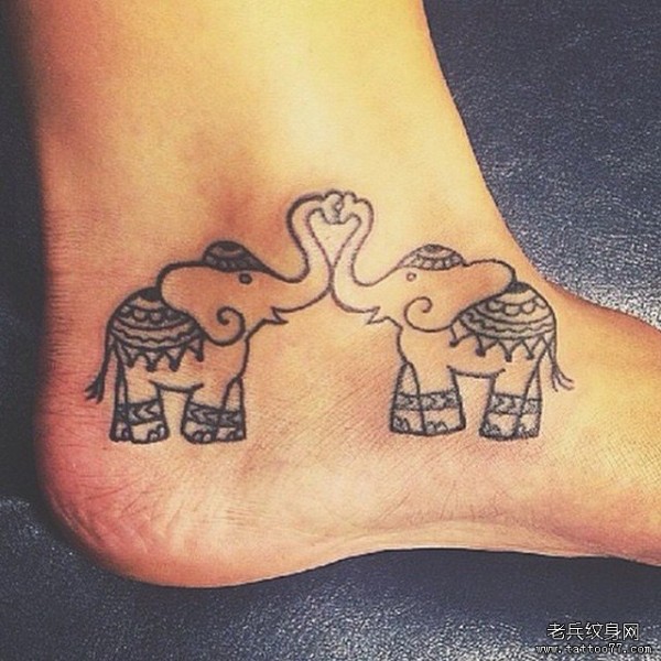 脚踝小清新大象纹身图案