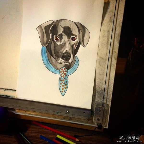 卡通欧美狗纹身图案手稿