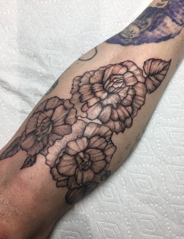 腿部纹身黑白灰风格点刺纹身花朵纹身图片