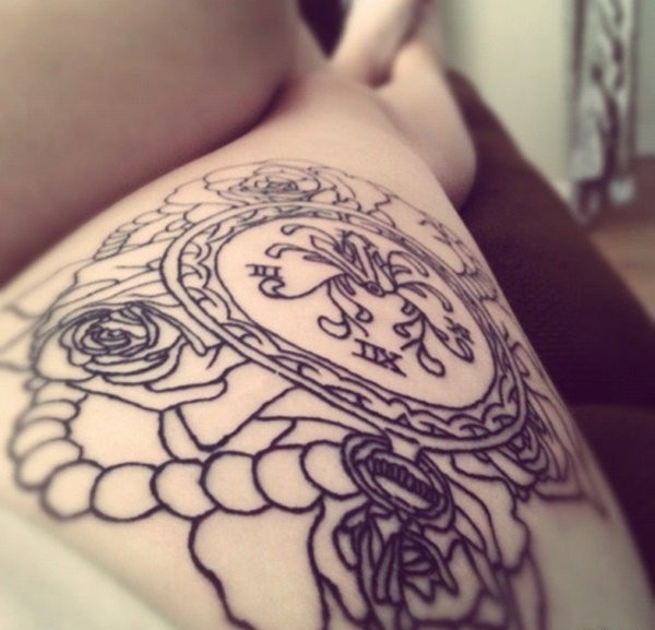 一组多元化纹身圆形古董怀表纹身图案