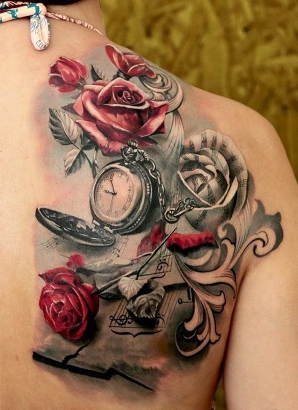 逼真的超现实主义花纹身图案来自纹身师莫拉莱斯