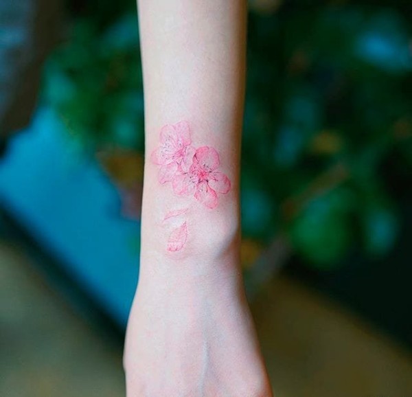 清新花朵腿部纹身图案图片_植物纹身图案大全_纹身图吧