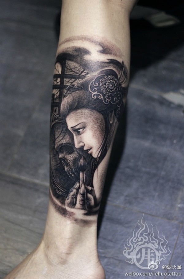 女生人物纹身图案 女生小腿上女生人物纹身图案
