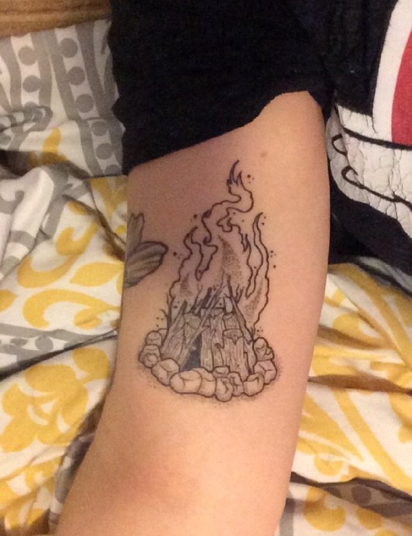 手臂上黑白灰风格点刺纹身几何元素纹身火焰纹身图片