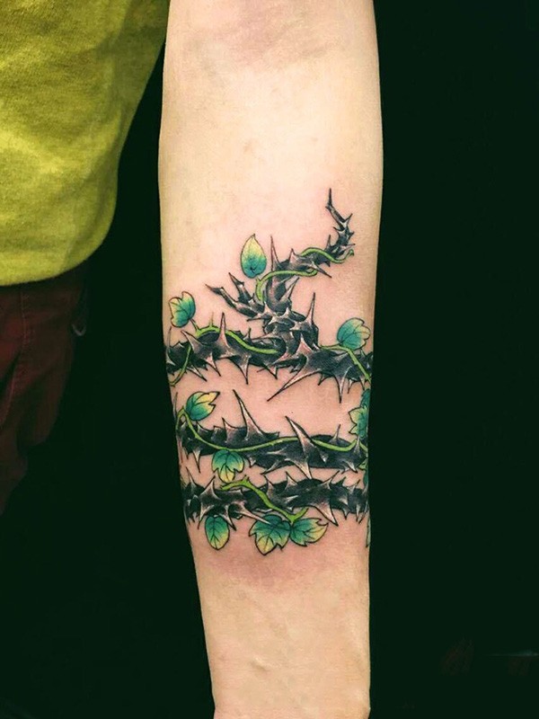 手臂满布荆棘的藤蔓彩绘纹身图案