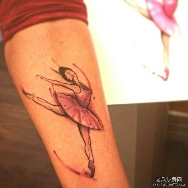 小臂泼墨舞女纹身图案