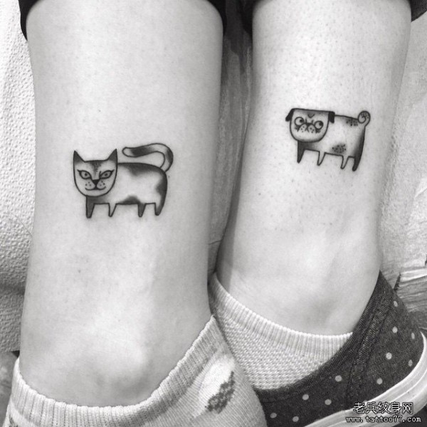 情侣脚踝小清新可爱狗纹身图案