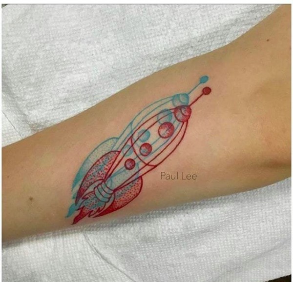 红色和蓝色的简约线条纹身立体图简易纹身素描图案