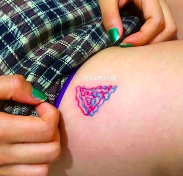 红色和蓝色的简约线条纹身立体图简易纹身素描图案