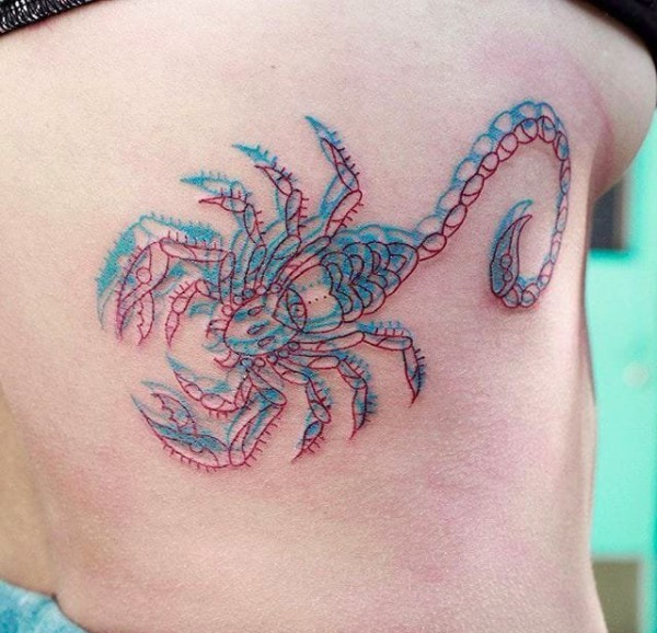 红色和蓝色的简约线条纹身立体图简易纹身素描图案
