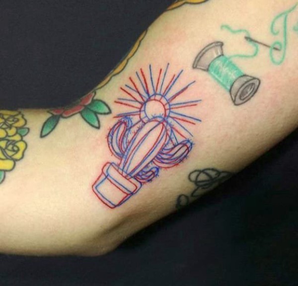 红色和蓝色的简约线条纹身立体图简易纹身素描图案