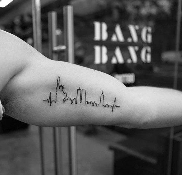 一组关于纽约城市和人物的黑白灰风格点刺纹身图案