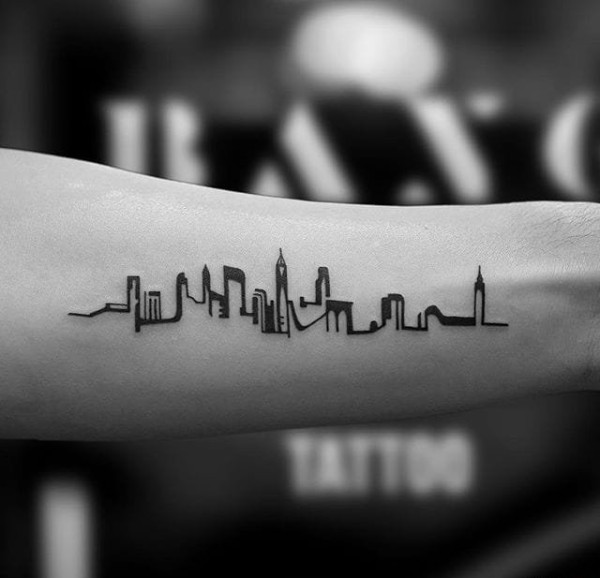 一组关于纽约城市和人物的黑白灰风格点刺纹身图案