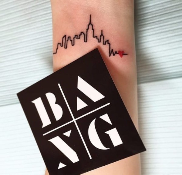 一组关于纽约城市和人物的黑白灰风格点刺纹身图案