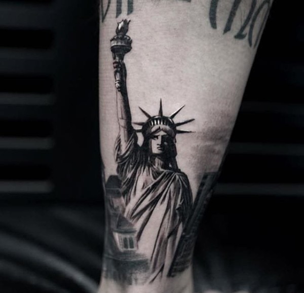 一组关于纽约城市和人物的黑白灰风格点刺纹身图案
