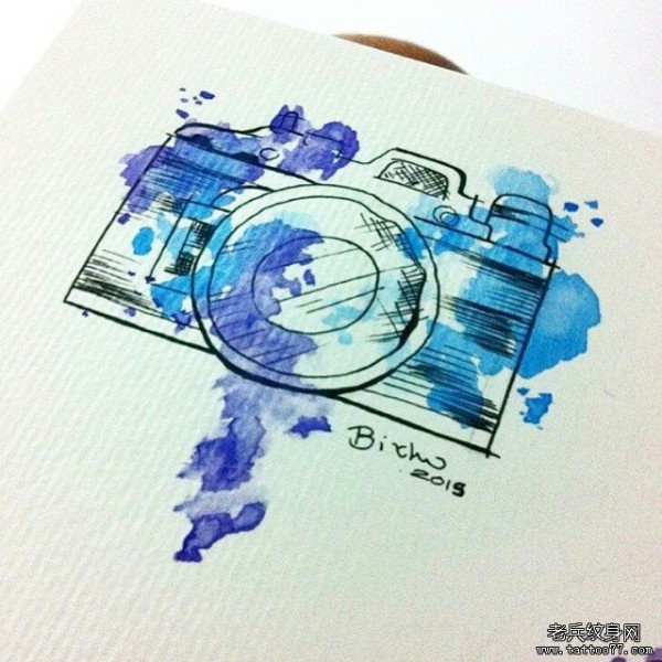 欧美泼墨相机纹身图案手稿