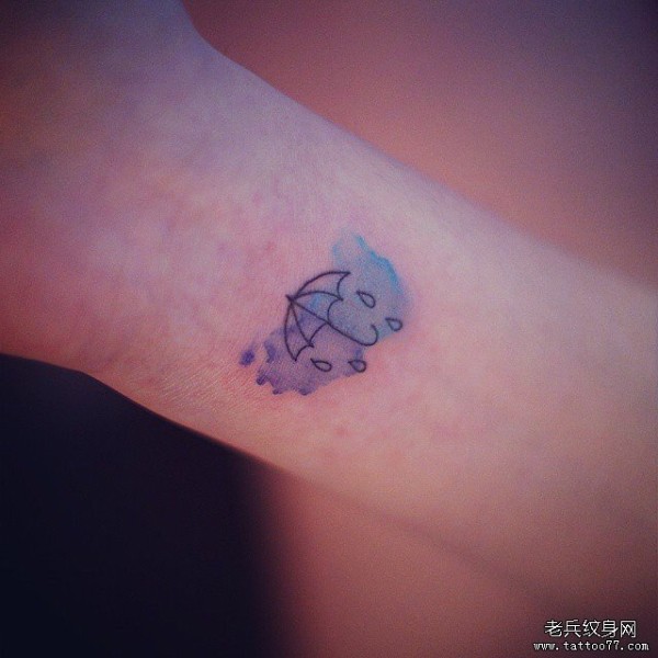 手腕小清新泼墨雨伞纹身图案