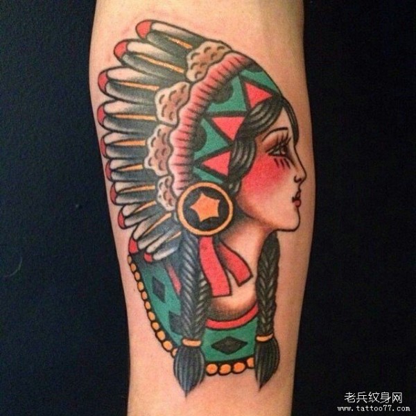小臂old school印第安女郎纹身图案