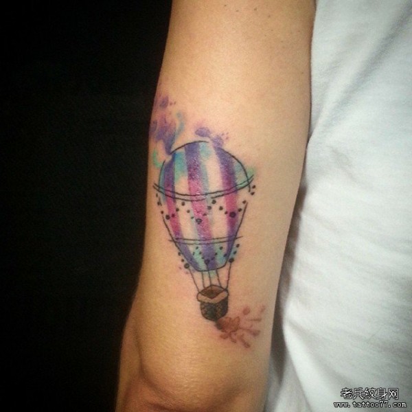 大臂泼墨彩色热气球纹身图案