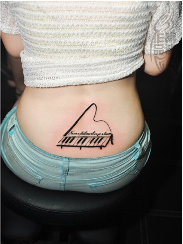 女生后腰纹身黑白灰风格抽象线条纹身图案