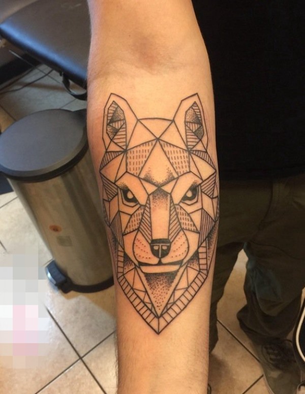 手臂黑白点刺几何简约线条狼动物纹身图片