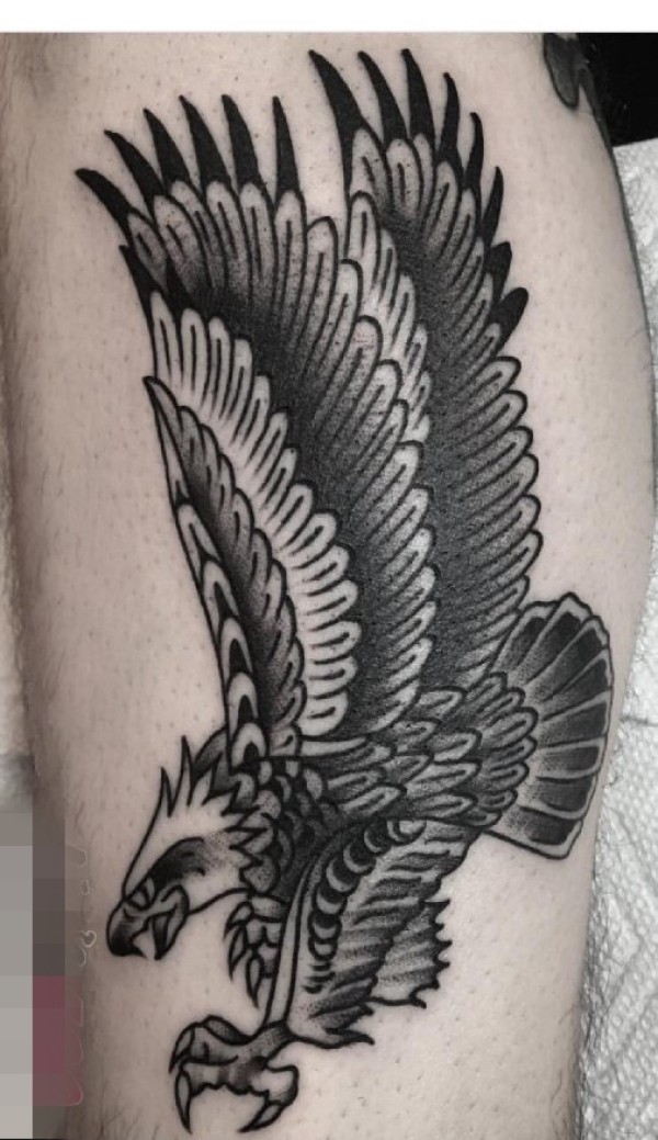 小腿上黑白灰风格几何元素简单线条老鹰动物纹身图片