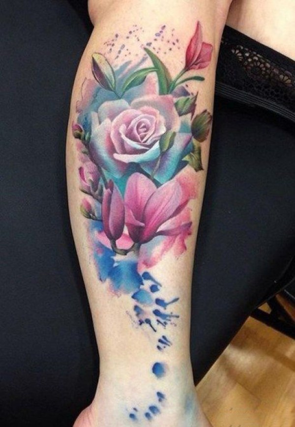 清新花朵腿部纹身图案图片_植物纹身图案大全_纹身图吧