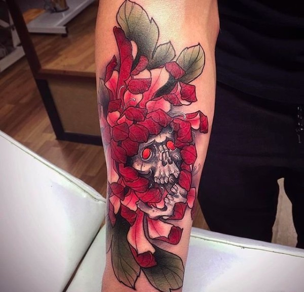 逼真的超现实主义花纹身图案来自纹身师莫拉莱斯