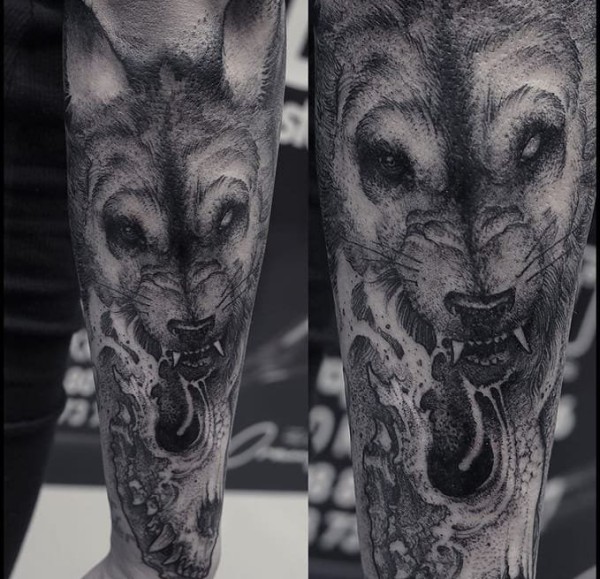 一组帅气的黑暗纹身黑白灰风格点刺纹身图案