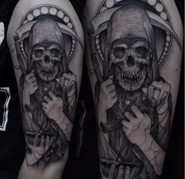 一组帅气的黑暗纹身黑白灰风格点刺纹身图案