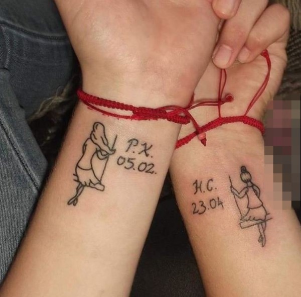 一组黑白灰风格简单个性线条小清新系列姐妹纹身图案大全